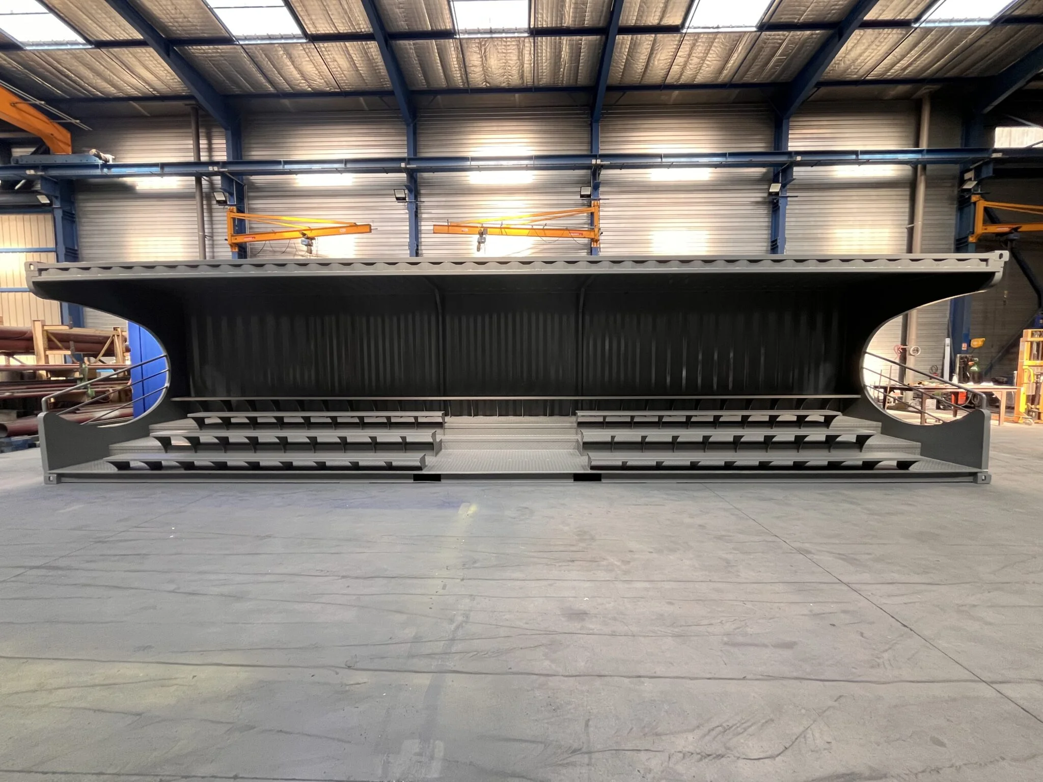 Découvrez en quelques images comment nous transformons de simples containers maritimes en tribunes. De l'expression du besoin de notre client à la livraison de la tribune finie.